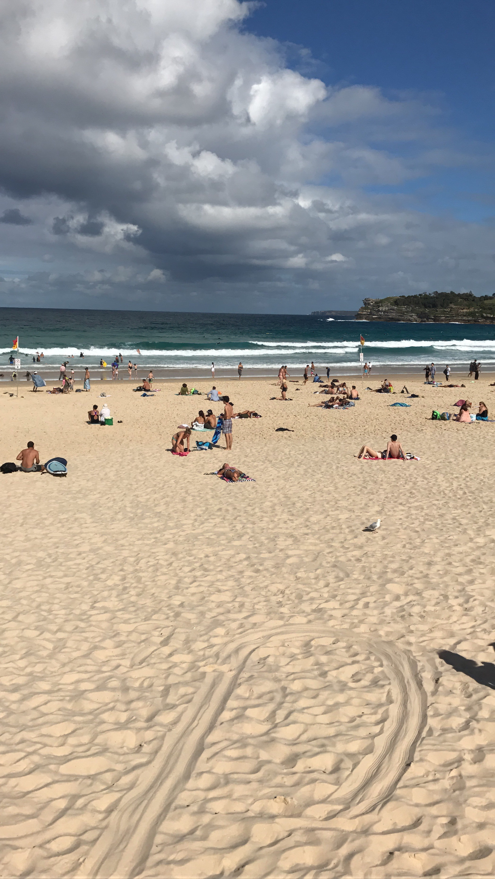 Bondi Beach, toplam 7 km uzunluğunda ve yarım ay şeklinde bir kıyı. Bu sahil doğal olarak insanların yaşam tarzlarını şekillendirmiş. Evlerin balkonlarında, bahçelerinde sörf tahtalarını bolca görüyorsunuz. Sörf yaparken vücudunuzu güneşten ve su sıcaklığından korumanız gerekiyor. O nedenle her evde wetsuit de mevcut. Etrafta sürekli evlerinden ellerinde sörf tahtaları ve üzerlerinde wetsuitleri ile çıkmış, denize koşan birilerini görüyoruz. Ayaklar çıplak tabi ki, onu söylememe gerek yok ☺️. Olası köpekbalığı tehlikesine karşılık denize girilen süre boyunca havada helikopter dönüyor. Hatta bugün denize girmek yasaktı. Tarih 29 Haziran. Köpekbalığı dostlarımız kıyıya biraz fazla yaklaşmış. Bu gibi durumlarda jetskiler ile tur atan görevliler tarafından kıyıdan uzaklaştırılmaya çalışıyorlar. Tehlike olduğunda çalan köpekbalığı alarmı ile birlikte, sahil bayrakları indiriliyor. Tehlike geçtiğinde ise ikinci bir alarm duyuyorsunuz, bayraklar geri geliyor.