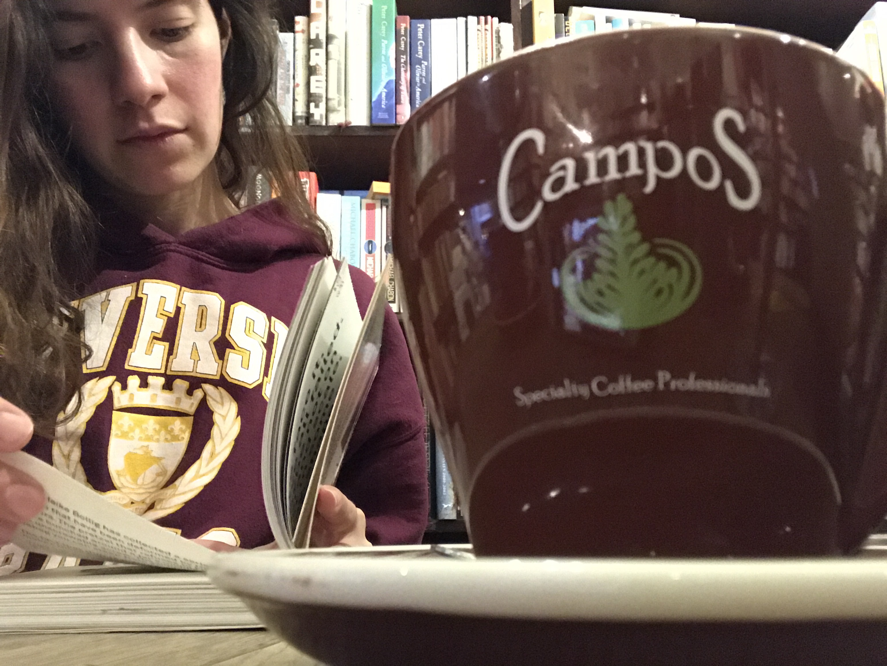Burası aslında kütüphane. Hayır hayır cafe. Sanırım her ikisi de. Kitaplar arasında kahveni içip bedavaya kitap karıştırabileceğin huzurlu bir yer. Bedava kitap diyorum. Koşun…