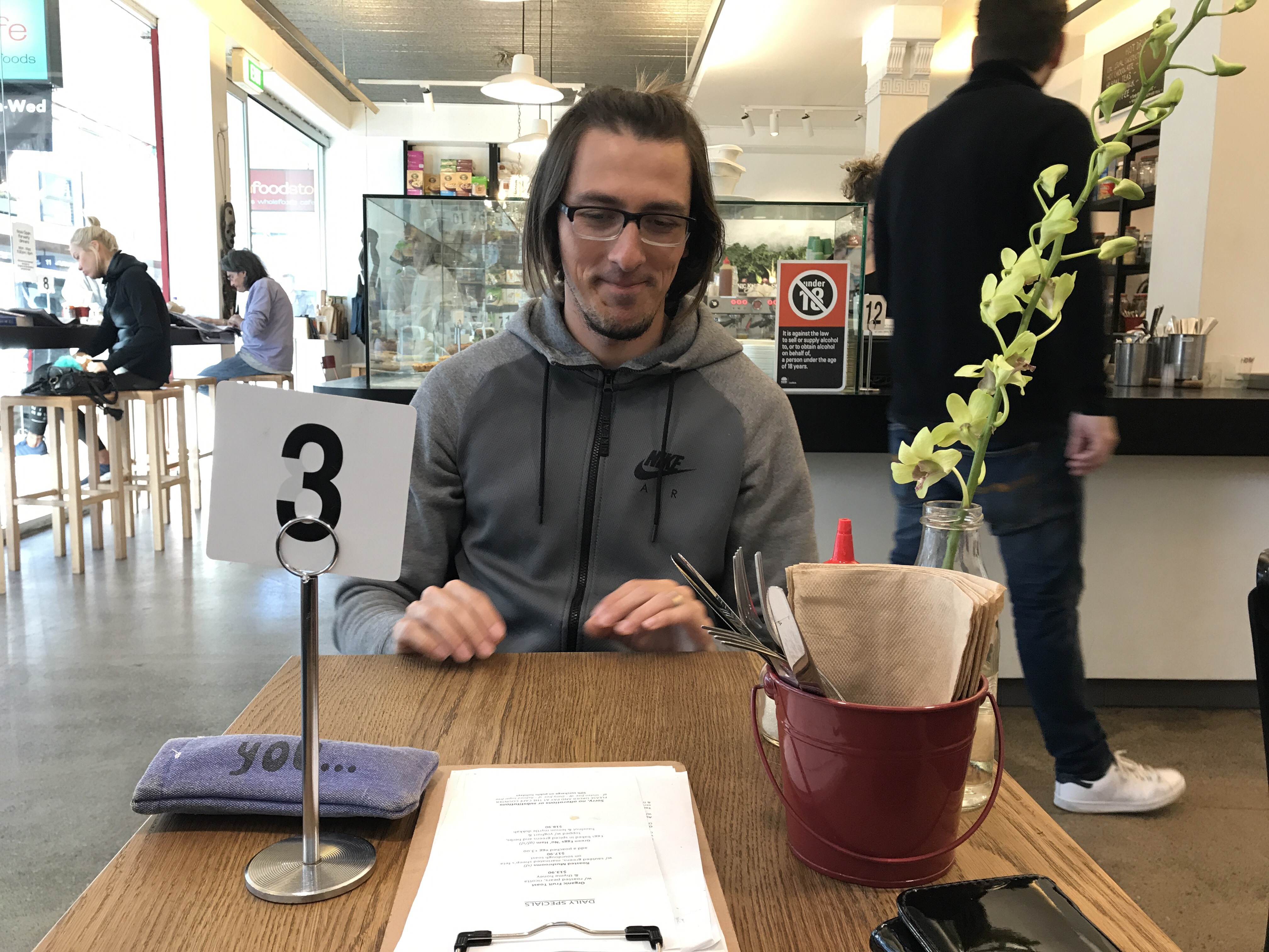 Özgür, kahvesini son bir aydır hep buradan almaya başladı. Yemek de var ama biz hep kahve aldık. Artık garsonlar Özgür’ü tanıyor. Hatta “Hello Oz” diye sesleniyorlar. Aynı zamanda sörf tahtası kiralayıp satıyorlar. Laptop’ı kapıp öğleden sonra saatlerinde çalışmak için ideal cafelerden biri.